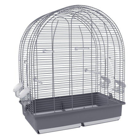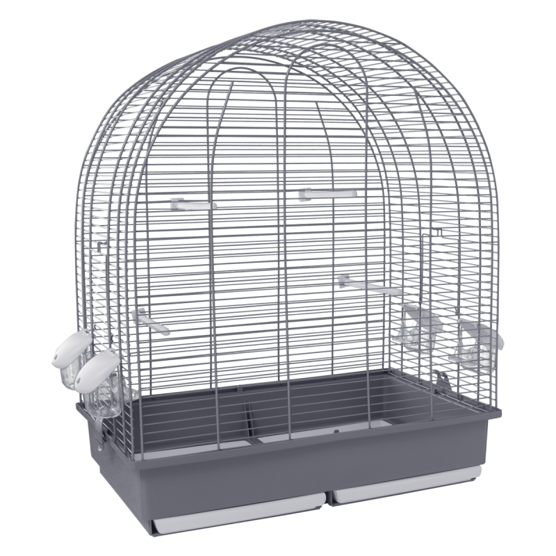 Es una jaula apta para cualquier tipo de pájaro. Doble bandeja. Apta para ir con pie Voltrega 60B. Fabricado en España, con pintura epoxi sin plomo y plástico polipropileno, no tóxico. Jaula con bandeja extraíble, fácil de limpiar.